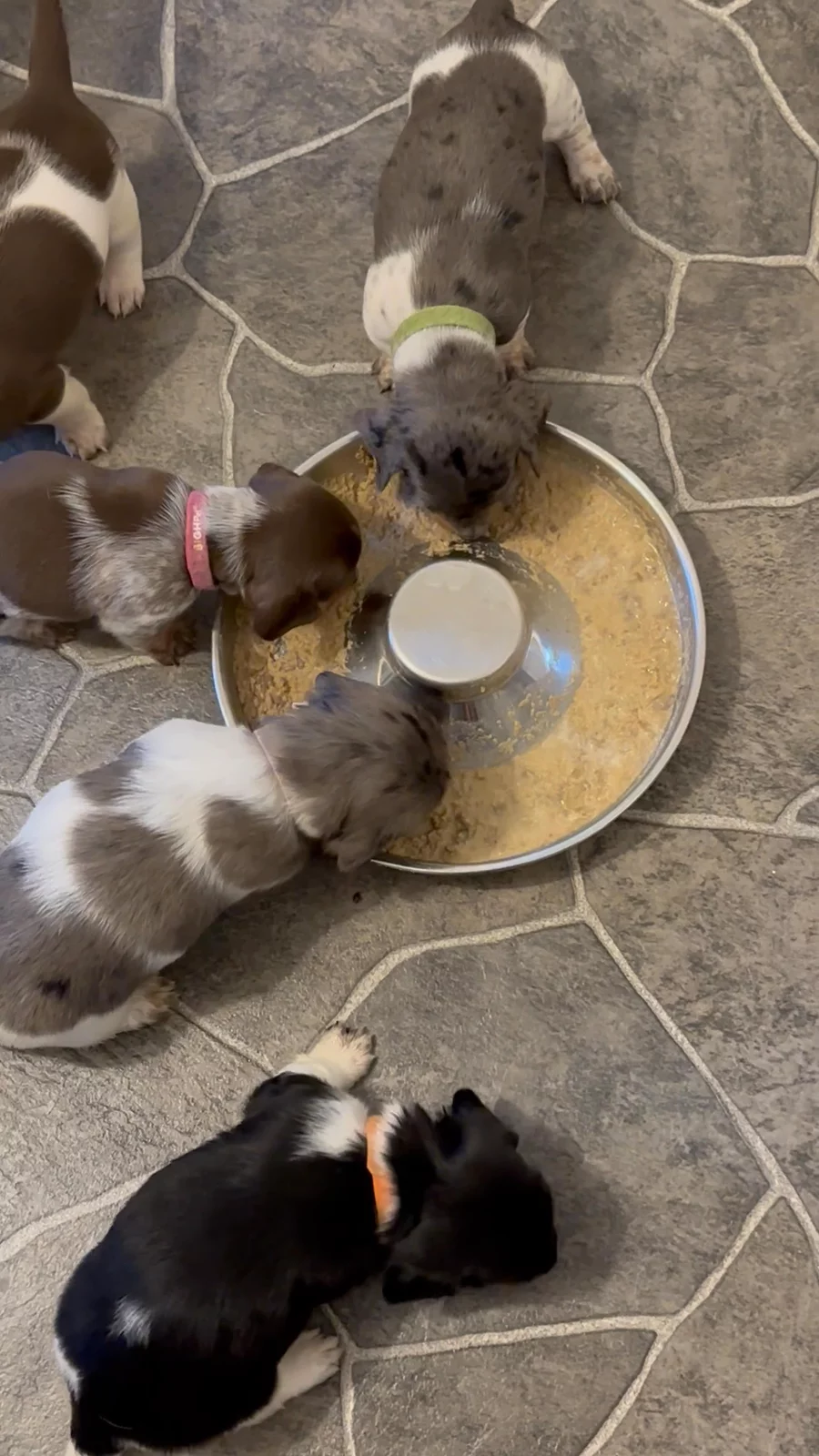 The puppies are 4 weeks old now and eating gruel for the 1 st time.