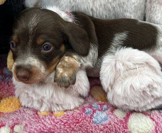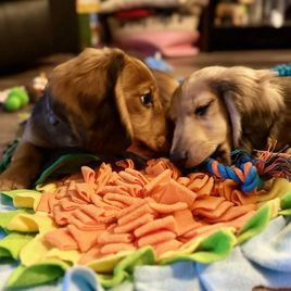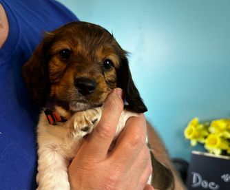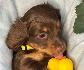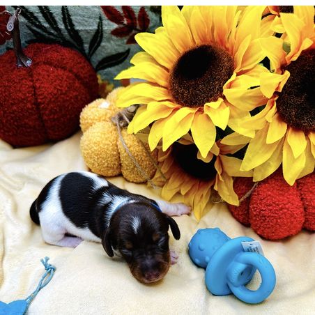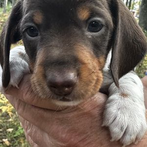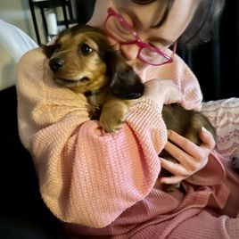 Everything went wonderfully with Bonnie for Northland Dachshunds. From the very beginning, she communicated quickly, honestly, and was always open to our questions. We loved being able to watch the puppy cam before bringing our puppy home, and it was clear how much love and care she puts into raising her dogs. She even drove a long way to meet us half way on gotcha day, which we really appreciated. Our puppy, Patches, has been amazing. He is really smart, friendly, and well-adjusted. We couldn't be happier with the experience.