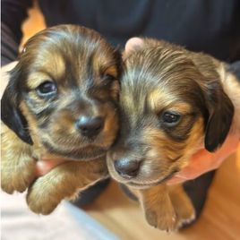 Bonnie is more than a “breeder” to me: she has become my friend as well. When I reached out to her initially, requesting TWO puppies, I’m sure she was perplexed. However, when I explained that I loved the breed SO much that I originally had my own miniature “pack” of 3 sweet girls; all 3 sharing the same Daddy but 2 having different Mamas. Sadly, I lost Gidget & Nubby in 2022 to different diseases, leaving only Emma (my oldest) who was brokenhearted & lost without her sisters. I thank Heaven for Bonnie, her vast wisdom about the breed ! Even though I’d previously shared my world with 3 Doxie Divas, I needed her input desperately since my “baby” Emma is almost 12 ; puppyhood had long passed & I was bringing home 2 bouncing baby BOYS! 💙 Bonnie made sure I was updated as the boys grew bigger & bolder, exploring their world for the first 8 weeks along the way. It meant so much to me, my sweet Emma and my 34-year-old daughter (Ashley), who has Down syndrome and Autism, and was very appropriate, to finally meet our boys, Phooey & Looey, on Valentine’s Day. ❤️❤️