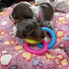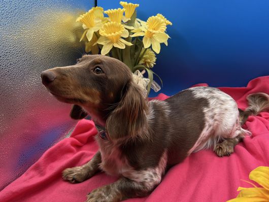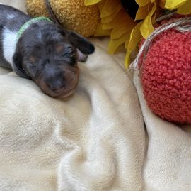 Haddie has a sweet affectionate personality. She enjoys playing with the other dachshunds and we love spending quality time with her. Her puppies share her amazing personality.