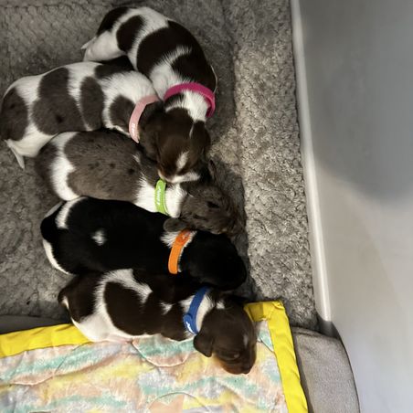 Maizy had her babies September 2nd. They are almost 2 weeks old here. They are very active and very healthy. We have 3 boys and 2 girls.