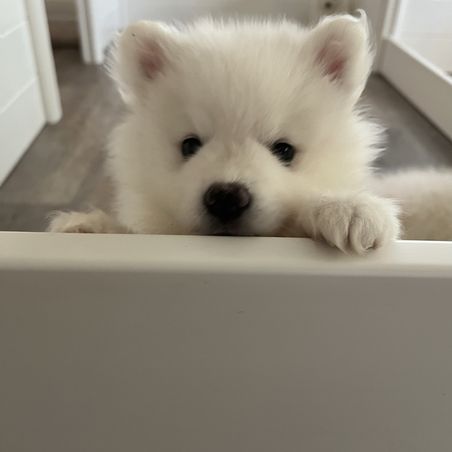 I'm Debi H., the breeder behind Northland Skies Eskies located in Macomb County, MI. Our top priority is raising happy, healthy, socialized, AKC registered puppies. Puppies are birthed in a loving home surrounded by experienced caretakers. They start socialization from just days old and continue this daily until the puppy is placed in their forever home. This socialization is an important part of development in an Eskies success to be with other dogs and people.