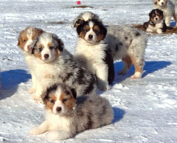 Our puppies include red merle and blue merle. Colors will vary depending on the parent dogs.