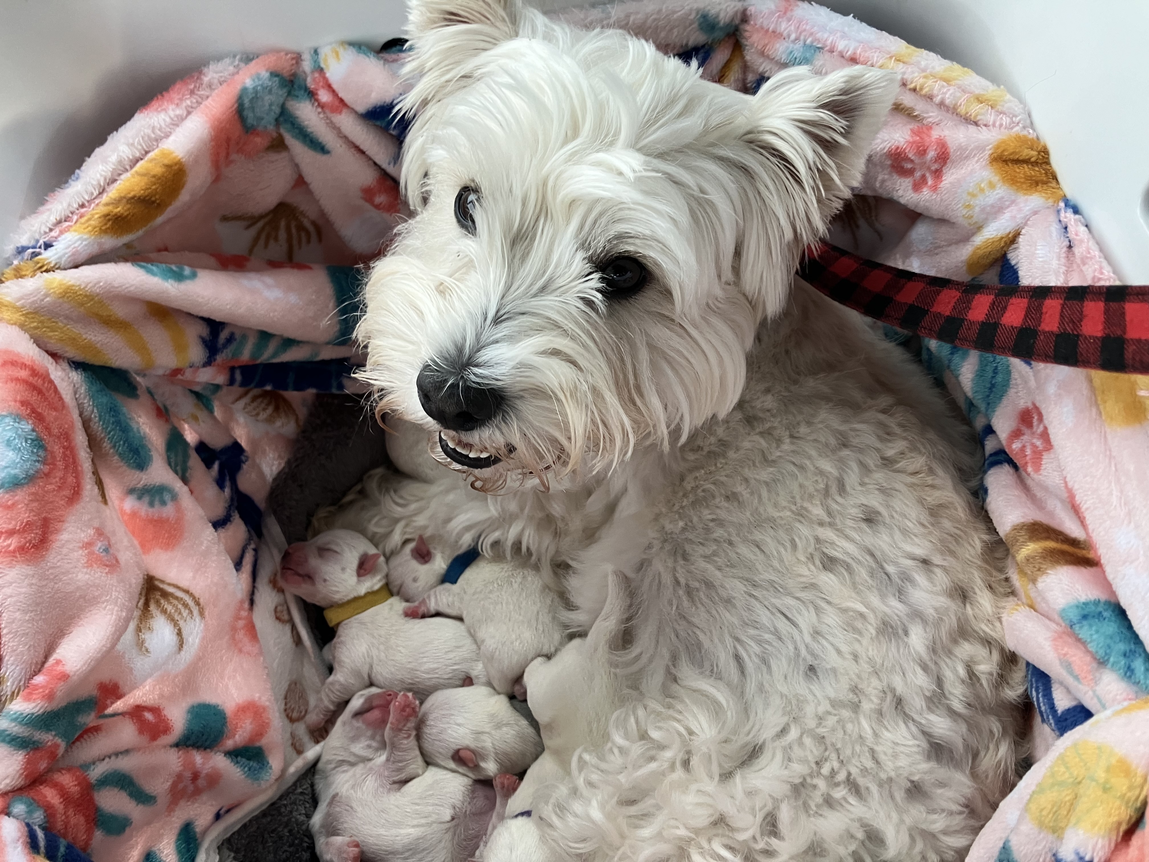 I'm Maggie W., the breeder behind Northshore Chicago Westie Puppies located in Lake Forest, IL. My beautiful Elsie has a litter that will be available mid June. Our Westies are lap dogs who are accustomed to household and kiddo noises and interactions.