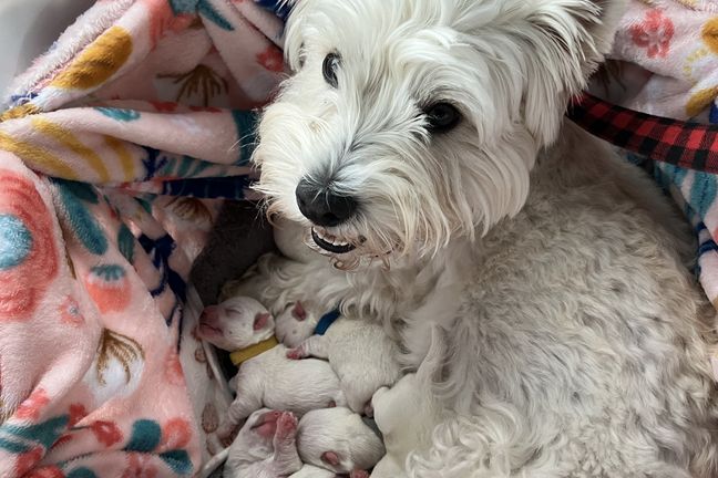 I'm the breeder behind Northshore Chicago Westie Puppies located in Lake Forest, IL. My beautiful Elsie has a litter that will be available mid June. Our Westies are lap dogs who are accustomed to household and kiddo noises and interactions.