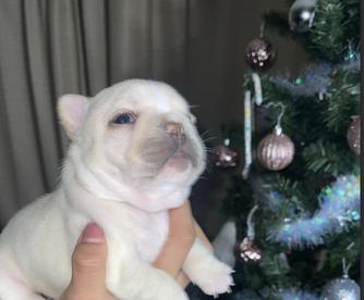 Short and small compact cream female. She has the most confident and outgoing temperament. Very loving and protecting of her owners.