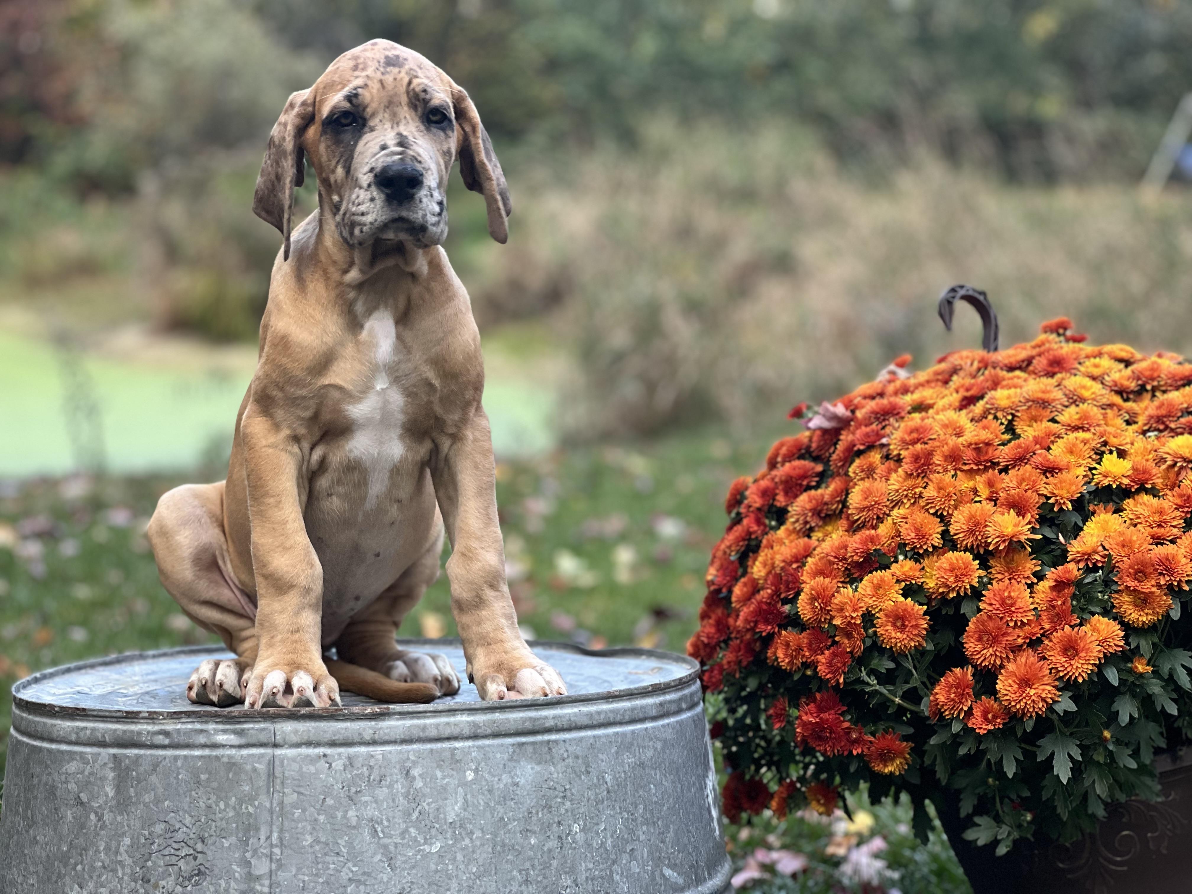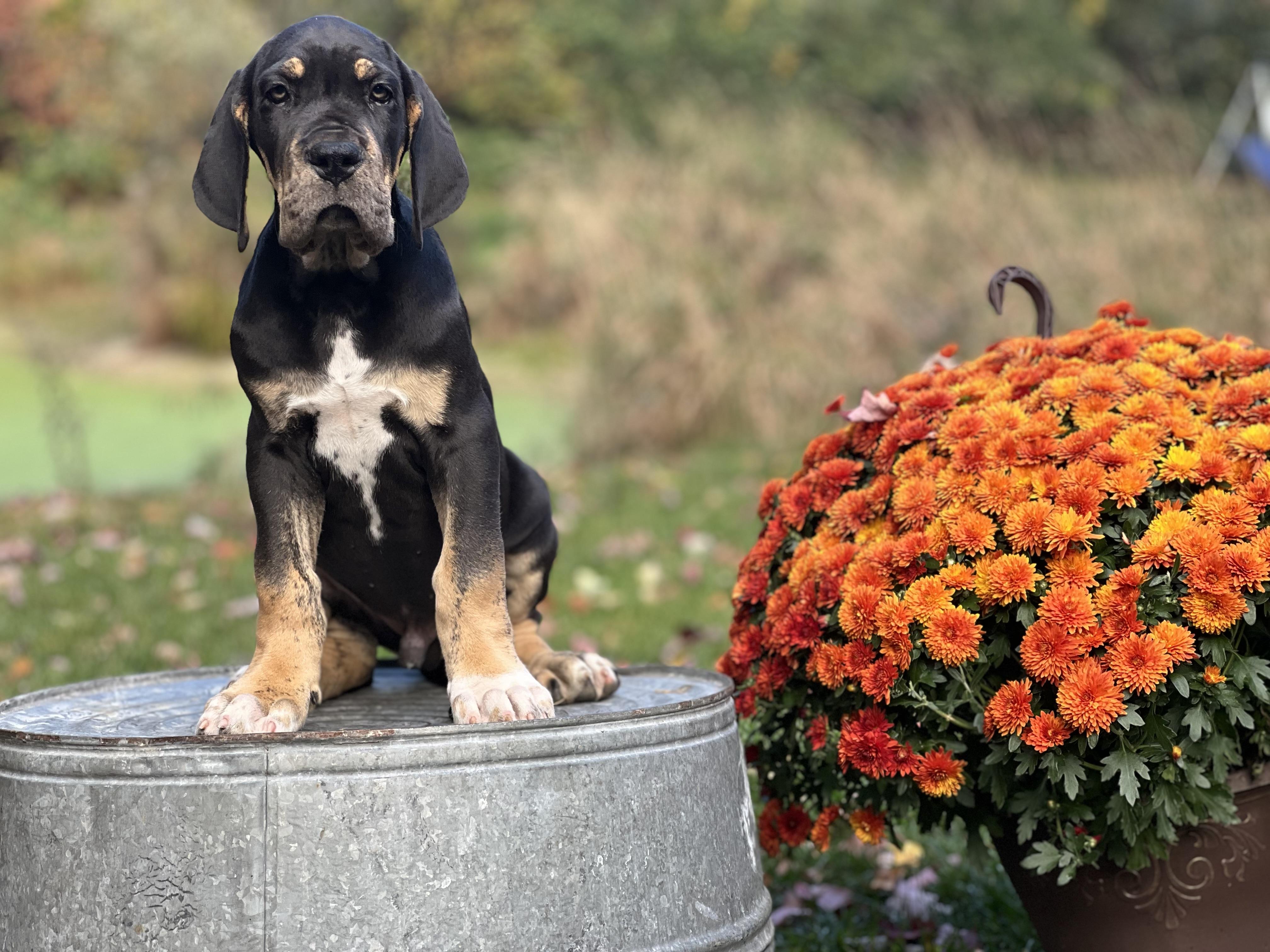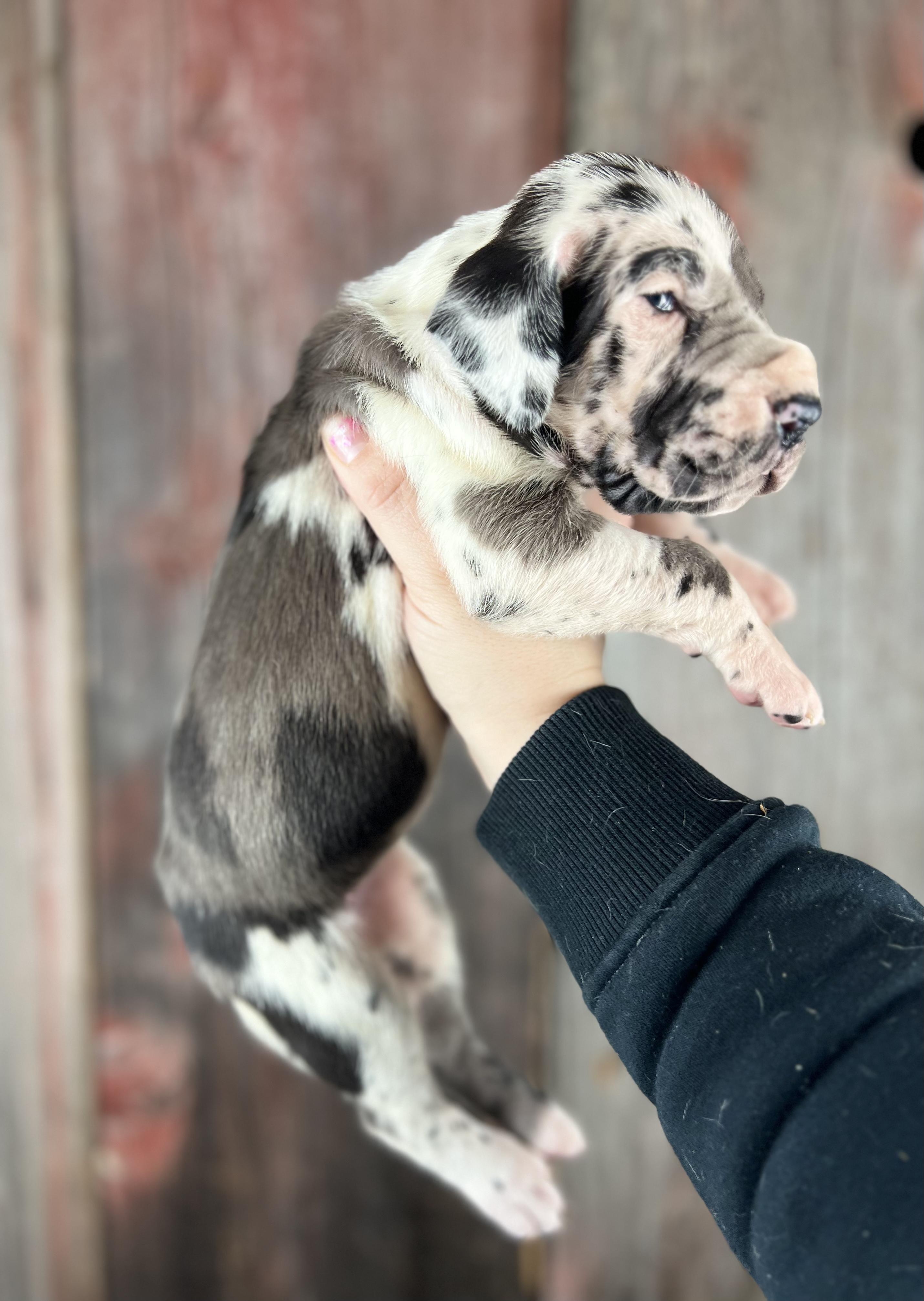 I'm Christina C., the breeder behind Northwood Euro Danes and Bassets located in Beulah, MI. We are a small-scale breeding program with unique Great Danes. Our dogs are beautiful, healthy, well-tempered, and loved! Our puppies are raised with love in our home, and we strive to help each one grow up with confidence so they are ready to thrive with their new families. They are affectionate, intelligent, and cute as can be!