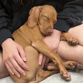All went smoothly. The love they have for their dogs is evident and they do the little things in training their puppies before they are sent home with you. This is making housebreaking and crate training MUCH easier. We brought Hali home 6 days ago and she is a beauty. Vizslas are energetic and she needs her play time and stimulation. But she also needs her rest and likes nothing more than to snuggle up next to her new human family:). What a perfect peanut we have.