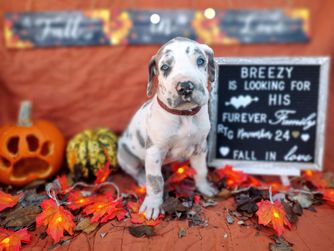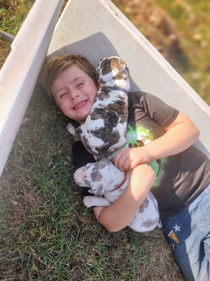 I'm Andrea H., the breeder behind Not So Dainty Danes located in Shawano, WI. We raise our litters in our home to help set the foundation for happy and confident puppies to transition well into their forever homes. It’s a privilege to have the opportunity to make an impact on each individual puppy!
