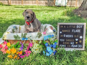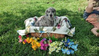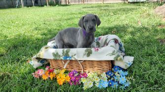 Not So Dainty Danes experience was great. They shared the puppy cam, photos, and updates. Blue is a sweet and adventurous pup that brings joy to us daily!