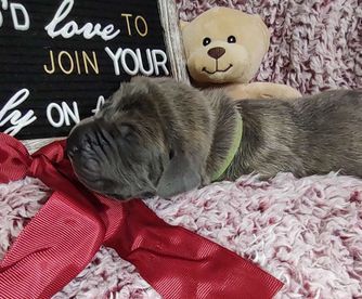 “Puppies are Akc registered. They're wormed at 2,3,4,6,8 weeks with pyrantel. Appropriate vaccinations at 6wks. Puppy pack including food, leash, collar, toy, blanket that smells like mom, vet exam sheet, papers for your records, copy of the contract. Dew claws removed. Lifetime breeder support. genetic health guarantee. Return policy. Spay\neuter contract. I require a Non refundable deposit of $300 to reserve your pup. They're RTG at 8wks old. If interested Full breeding rights are available for an extra cost to eligible homes. We also have a live streaming puppy camera for our puppy families to peek on their littles whenever they want! Deposits are non-refundable and come off the price of the puppy.”