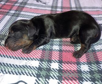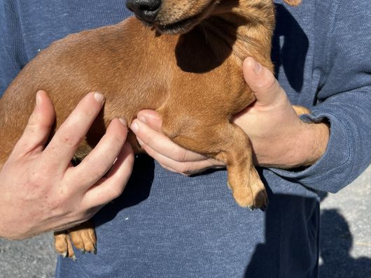 Dachshund puppies are miniature size. Sizes will vary depending on the parent dogs.