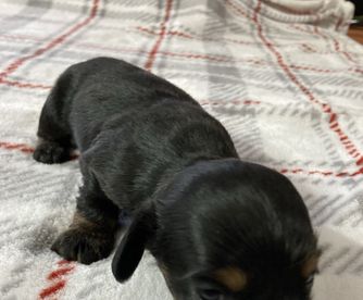 Dachshund puppies include smooth and longhaired coat varieties. Coat types may vary depending on the parent dogs.