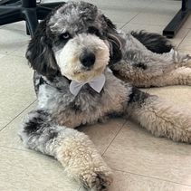 Ryker has been an excellent addition to our family and has already positively impacted our lives and the lives of several children and adolescents. He is currently training to become a school therapy dog, and his calm, affectionate nature makes him perfect for the role. We couldn’t be happier with him. We highly recommend Nottingham Aussiedoodles to anyone looking for a quality breeder and a loving, well-socialized companion.