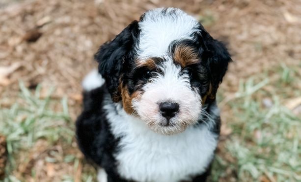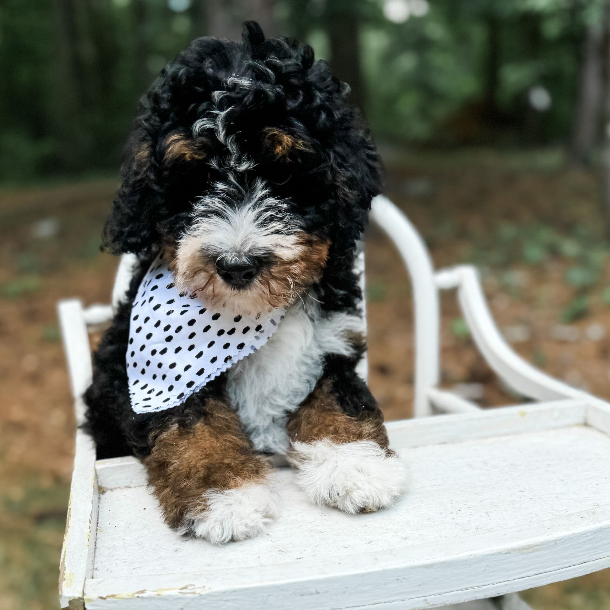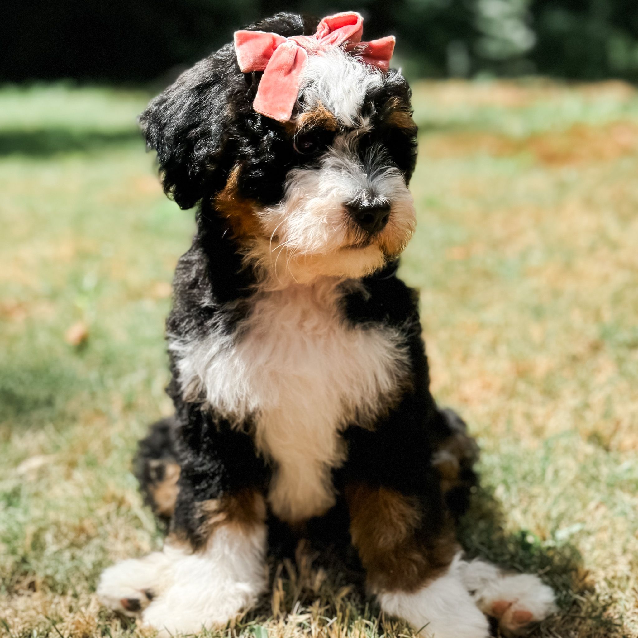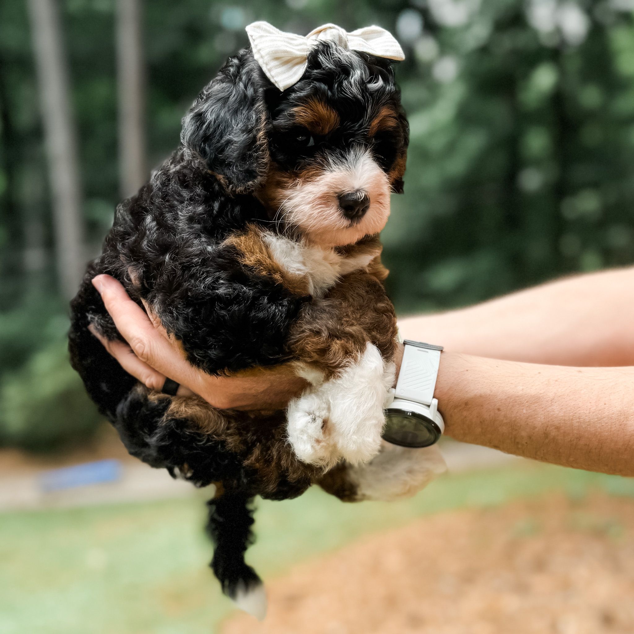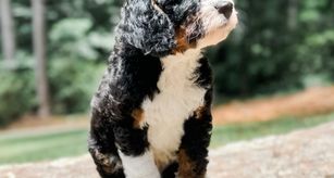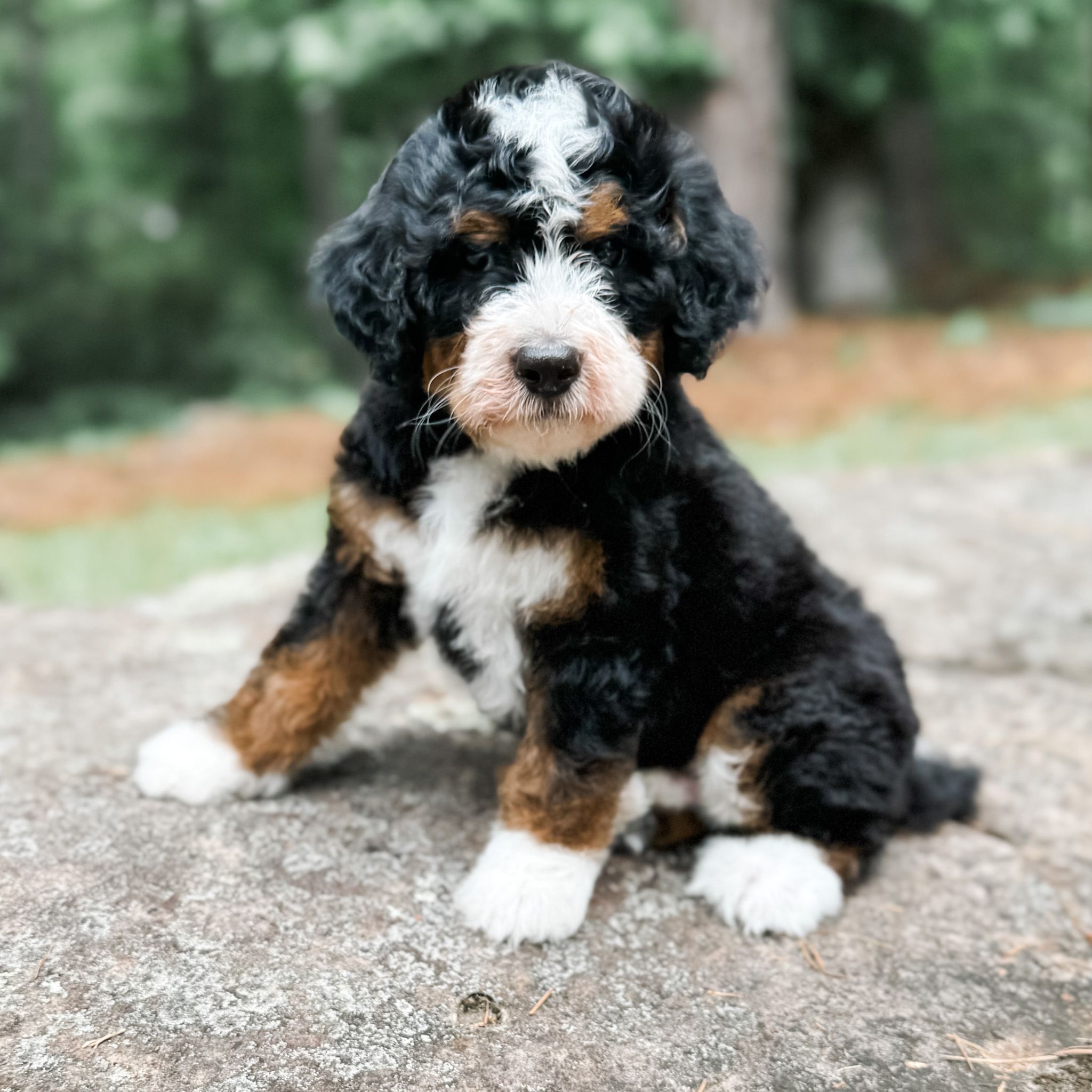 Our Bernese Mountain Dog puppies are tri-color. Bernedoodle puppies are tri-color. Colors will vary depending on the parent dogs.