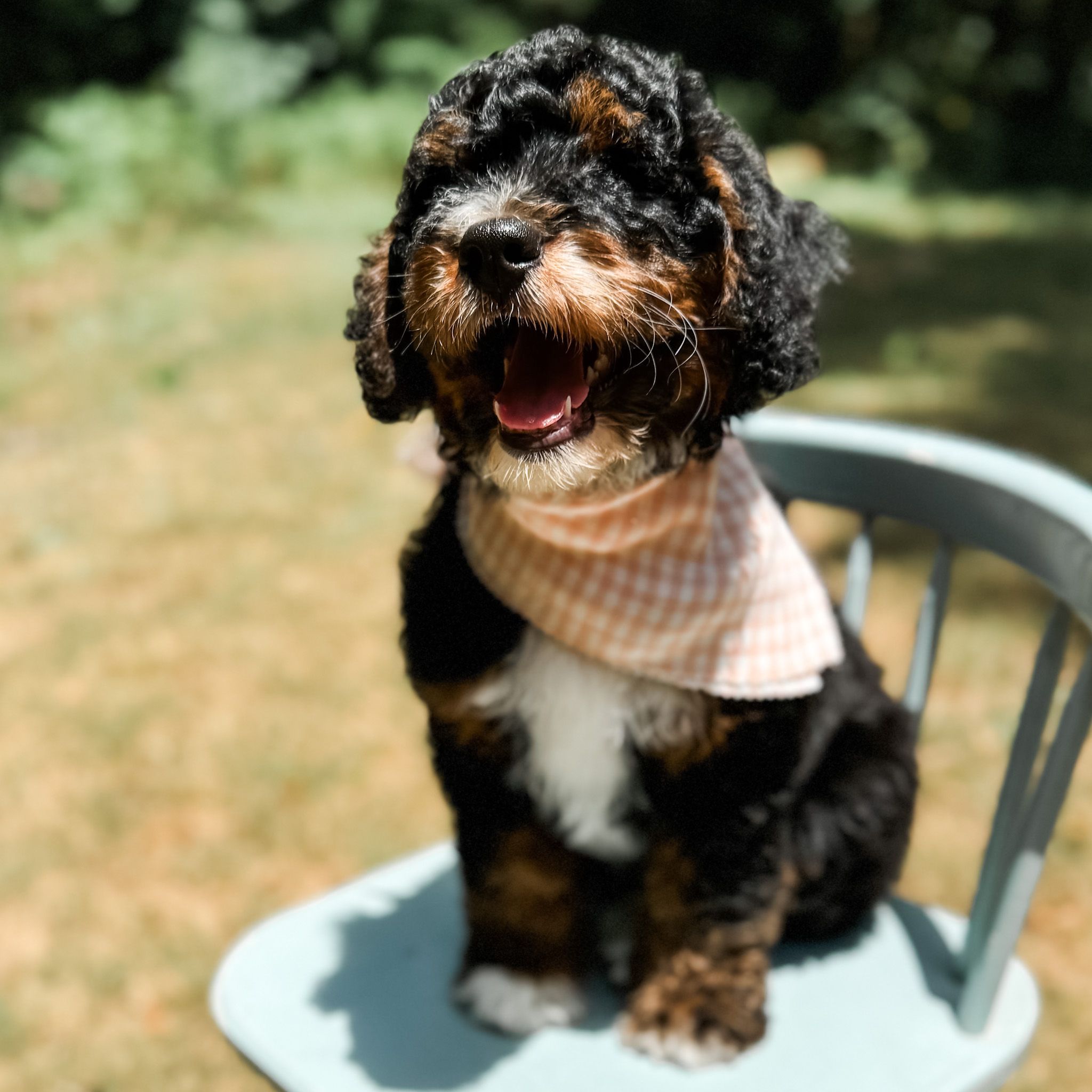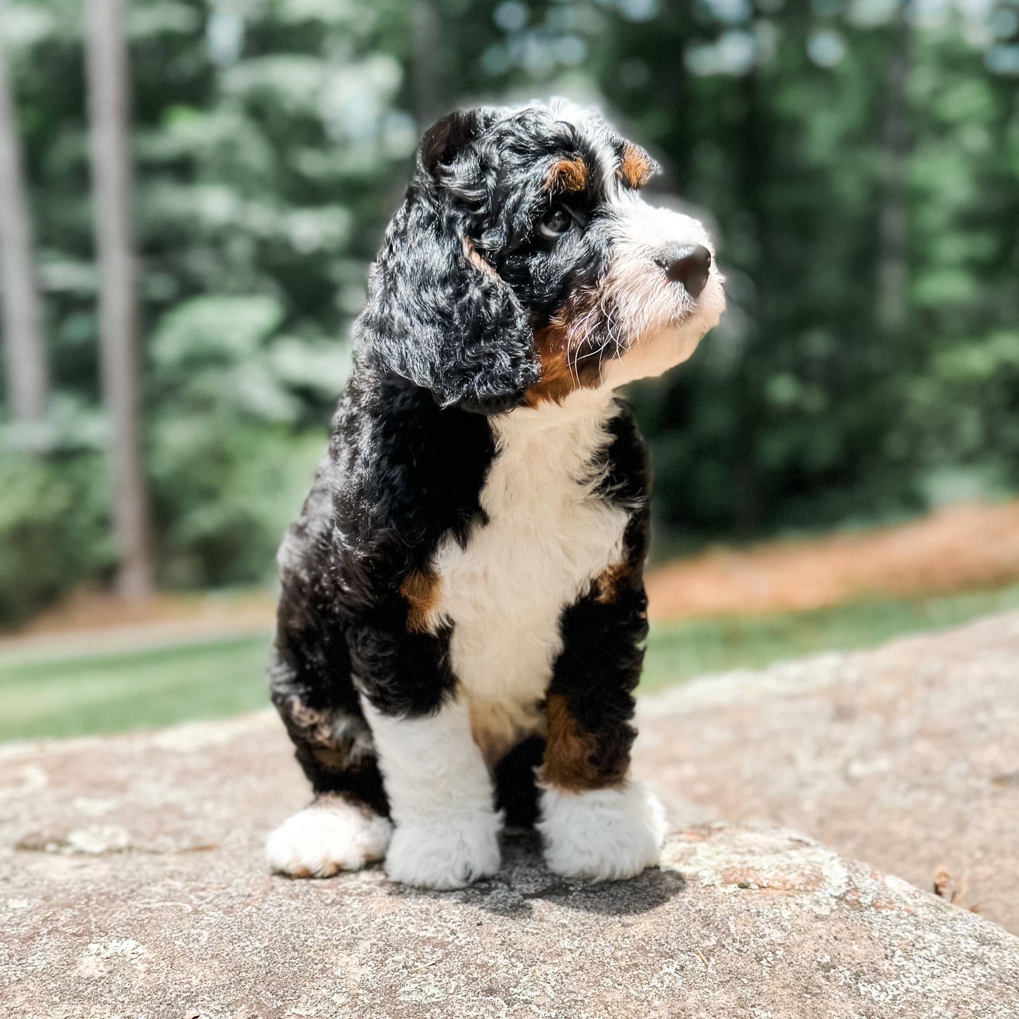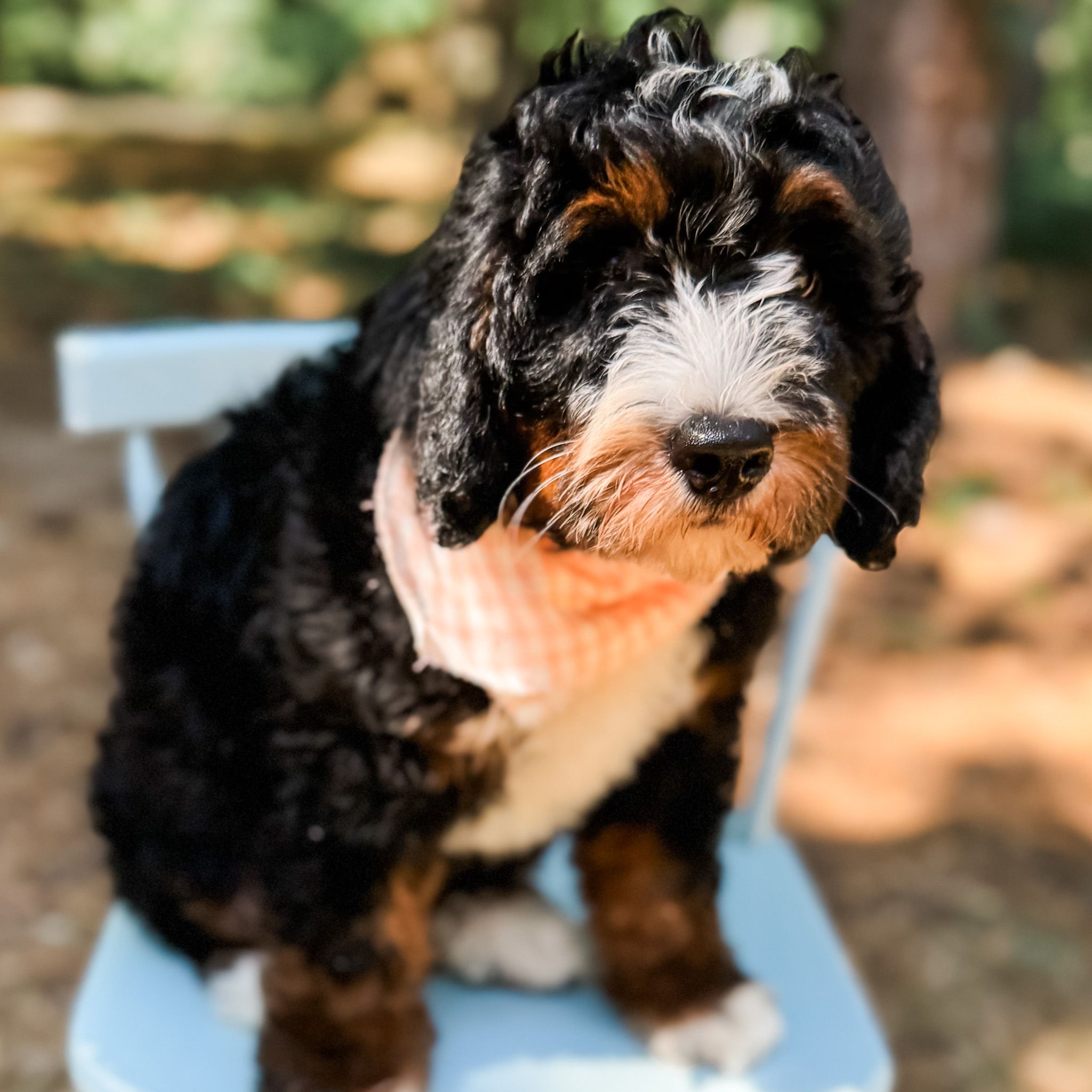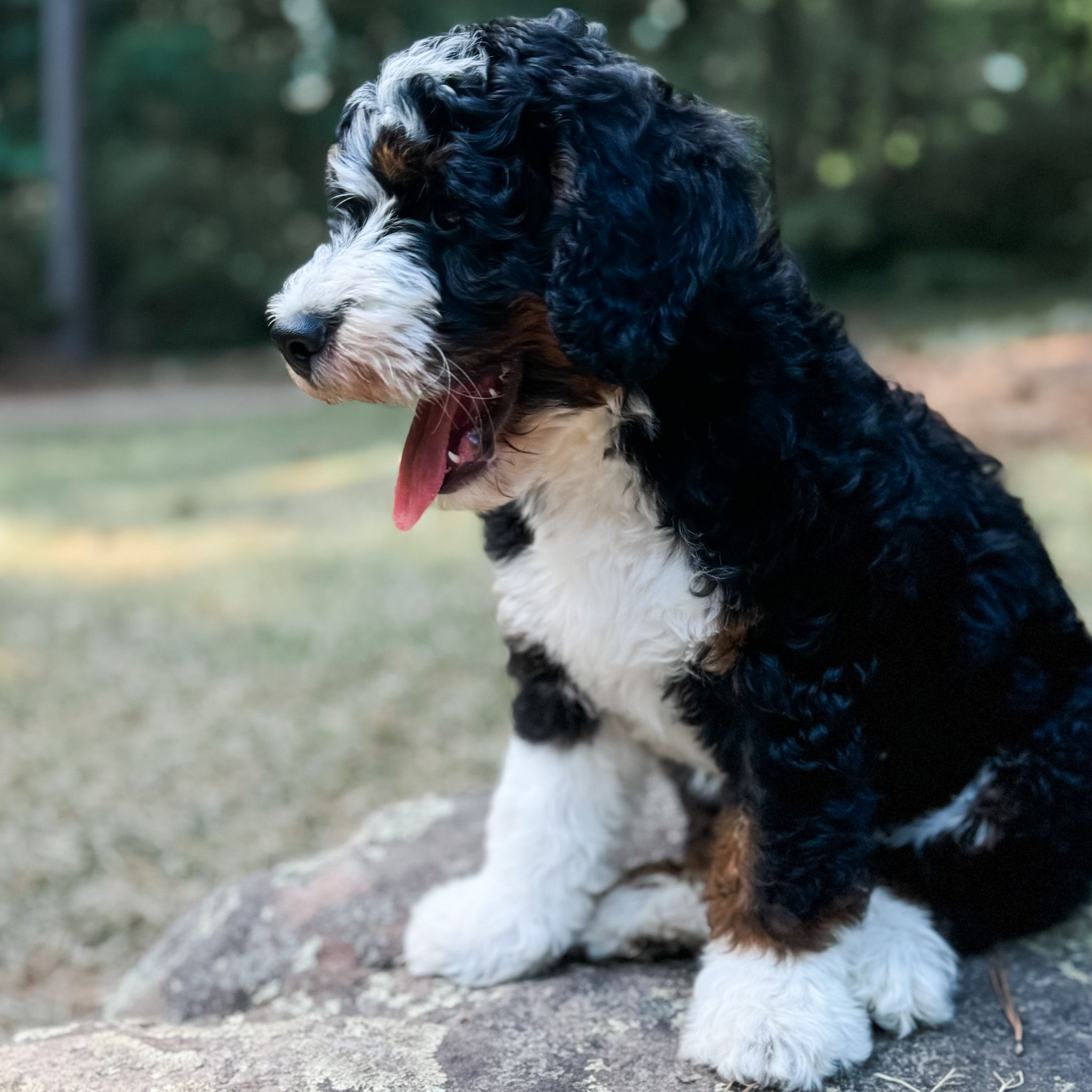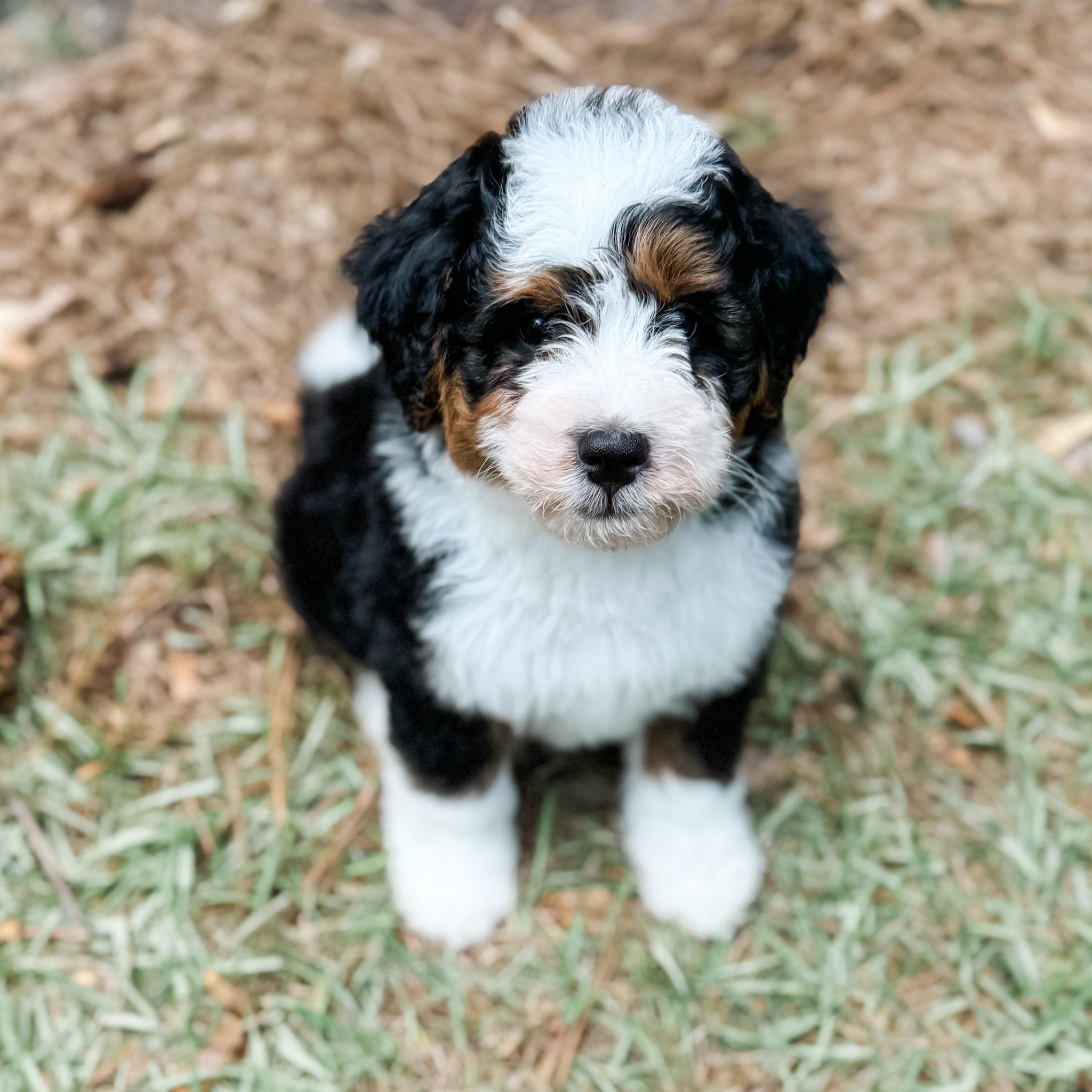 Our Bernese Mountain Dog puppies are tri-color. Bernedoodle puppies are tri-color. Colors will vary depending on the parent dogs.