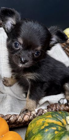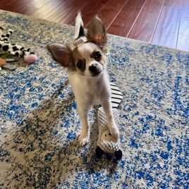I could not be more thrilled with both my new puppy and the experience I had with Natalie getting her. After many months of searching, I fell in love with Clementine, (formerly pumpkin) the first time I saw her profile and would’ve been heartbroken to not get her, because I immediately knew that she was my dog. Luckily Natalie was kind, responsive and informative with all of my questions and in making arrangements and it was immediately clear that she was deeply invested in making sure her puppies were safe and happy and well taken care of, and I deeply appreciated the health testing and DNA checks that she provided. Clementine herself is everything a Chihuahua puppy should be- she is bright and inquisitive and playful and loving, and remarkably adaptable to new situations. Chihuahuas are a very impressionable breed in their first few months of life, and it’s very obvious that this dog spent her first weeks in a lovely and nurturing space. Would recommend without hesitation, wonderful people, and wonderful puppies!