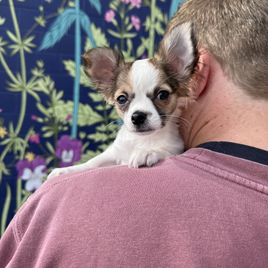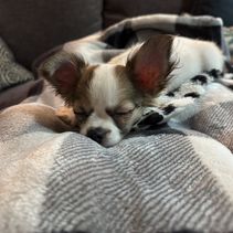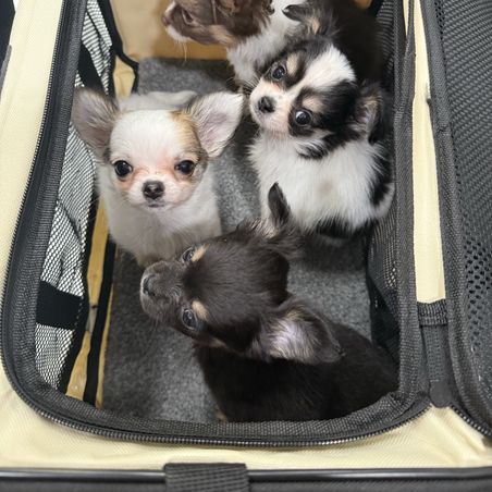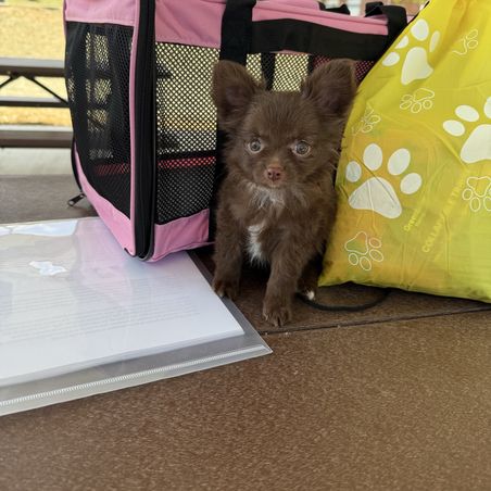 Ever since I was a little girl I've wanted a chihuahua. When I was little my grandparents have a whole bunch of chihuahuas and I absolutely fell in love with them. When I first saw Basuki on Natalie and Tyler's profile, I absolutely fell in love with her. She was so small and sooo adorable. When I got her she was absolutely perfect and well behaved, I couldn't have asked for better. Working with Natalie and Tyler was awesome too! I had no issues with them and they were absolutely helpful and provided me with a lot of information about chihuahuas since this is my first time owning one. They also sent a lot of progress images when I asked which was so nice of them! Basuki is so loving and is super attached to us, she always sleeps on top of me and my partner and loves to be around us 🥰 She is the cutest little girl and I am so happy with this whole process!!