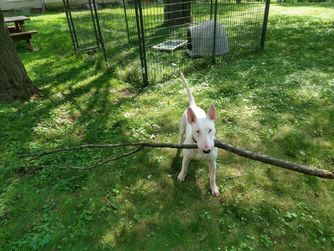 Cleo is a member of Barn Hunt Buddies, Bull Terrier Club of Metro Detroit, Terrier Club of Michigan, Progressive Dog Club of Wayne County, and Bull Terrier Club of America.