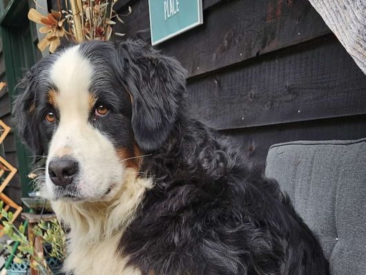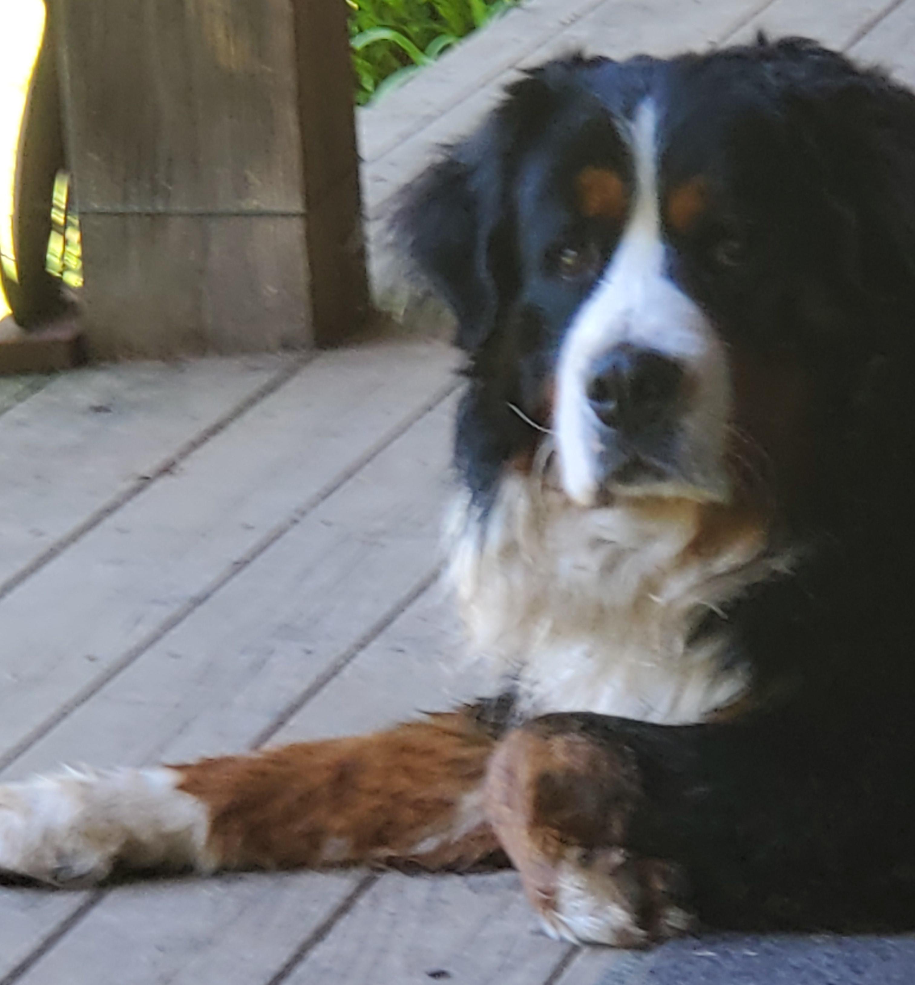 Clyde is a male Bernese Mountain Dog. Carefully selected as a great representative of his breed, Betti decided to make him part of their program. Betti has passed Good Dog’s screening process, which involved a review of their breeding practices, environment, and the mental and physical health of their dogs.