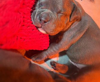 Our puppies are socialized correctly with humans, children especially, and other dogs. They are exposed to outside environments as well. Providing our dogs with good experiences allows them to be confident as they grow. Also, the diet for our dams and puppies is top-notch. All of our dogs are our personal pets and get the best possible treatment. Proper exercise, daily walks and the flirt pole.