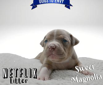 I'm Angela A., the breeder behind NV Kennels located in Ocean City, MD. Our focus is on producing the ultimate companion, American Bullies to eNVy with their eye-catching physique, correctness, loyalty, and most importantly temperament. All of our dogs live in the home with us and are always with us at outside activities (ie: sports games). We adore our dogs and make sure each puppy goes to a wonderful home.