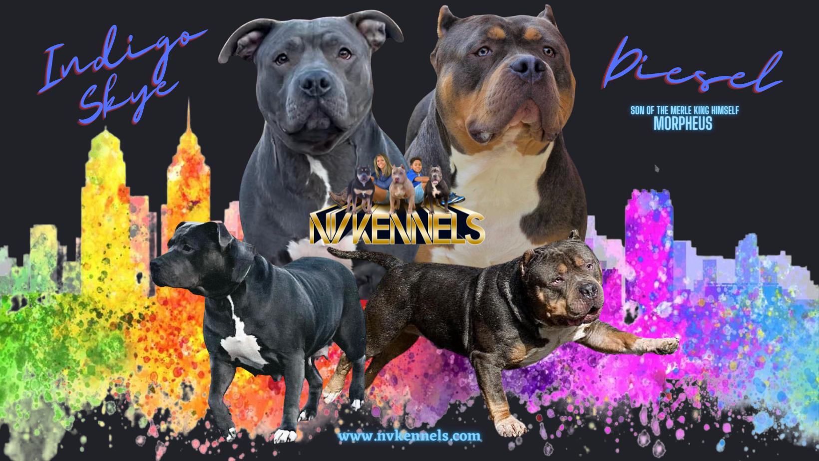 Our desire to breed arose organically from being single American Bully owners with a love for the breed. Our daughter’s aspirations of becoming a vet and our love for our first AB, Indigo, led us to start our very own kennel. The name NV Kennels is after our two children Angelle NAOMI and Rickie VANCE. We are proud to bring beautiful family dogs to other households through our program.