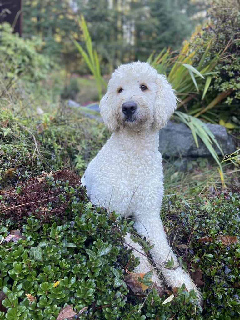 Meet the most patient dog around. This girl had my heart from day one, but she continues to amaze me with her temperament. She is laid back, eager to please, smart, human-focused, and the ultimate snuggle buddy. She is also quite quirky, and loves to find rocks and hang out with them. She has a golden retriever friendliness with a strong loyalty to her people.