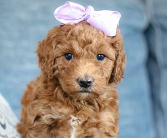 Say hello to Bijou, a graceful AKC mini Moyen Poodle with a name that means "jewel"—and she truly is one of a kind. This elegant girl combines the intelligence and athleticism of the Poodle with a gentle, affectionate spirit. With her striking looks, curly coat, and confident trot, Bijou turns heads everywhere she goes. Whether she’s out on an adventure or curled up beside you, she brings a perfect blend of poise, playfulness, and pure love.