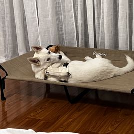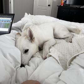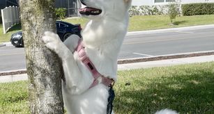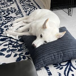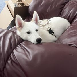Her dad named Bolt is an AKC registered Siberian Husky, he’s a handsome full white stud. Her mom is unregistered but is also a beautiful full white Siberian Husky 🤍