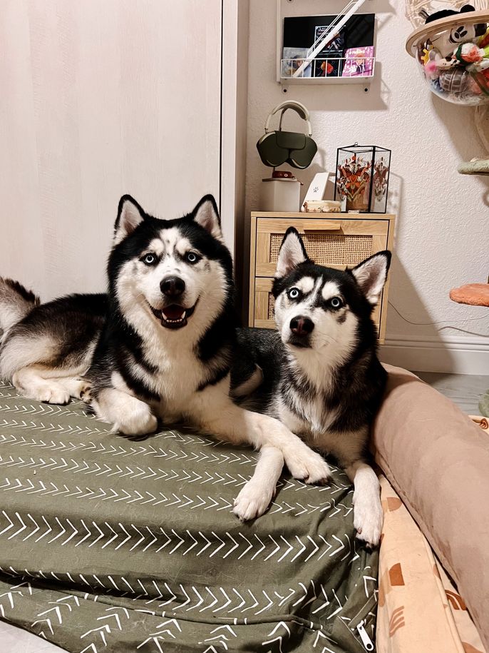 Our grandma has been a Maltese breeder for as long as I can remember. We loved watching the puppies grow and helping our grandma raise them. So when my sister got her first husky (Nyx) back in 2019 we just fell in love with her and the breed, so once she became of age and received all the necessary health tests we decided for her to have puppies and we loved it! It’s not easy but so worth it!