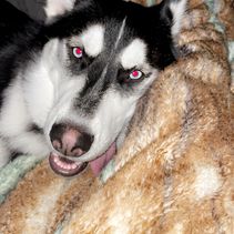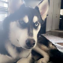 Nyx is the alpha of our pack. She has a great temperament. She is very laid back but will put the others in their place if necessary. She is definitely the boss. She loves kids and is a great momma to her pups. She has a standard coat, is black and white with beautiful blue eyes.