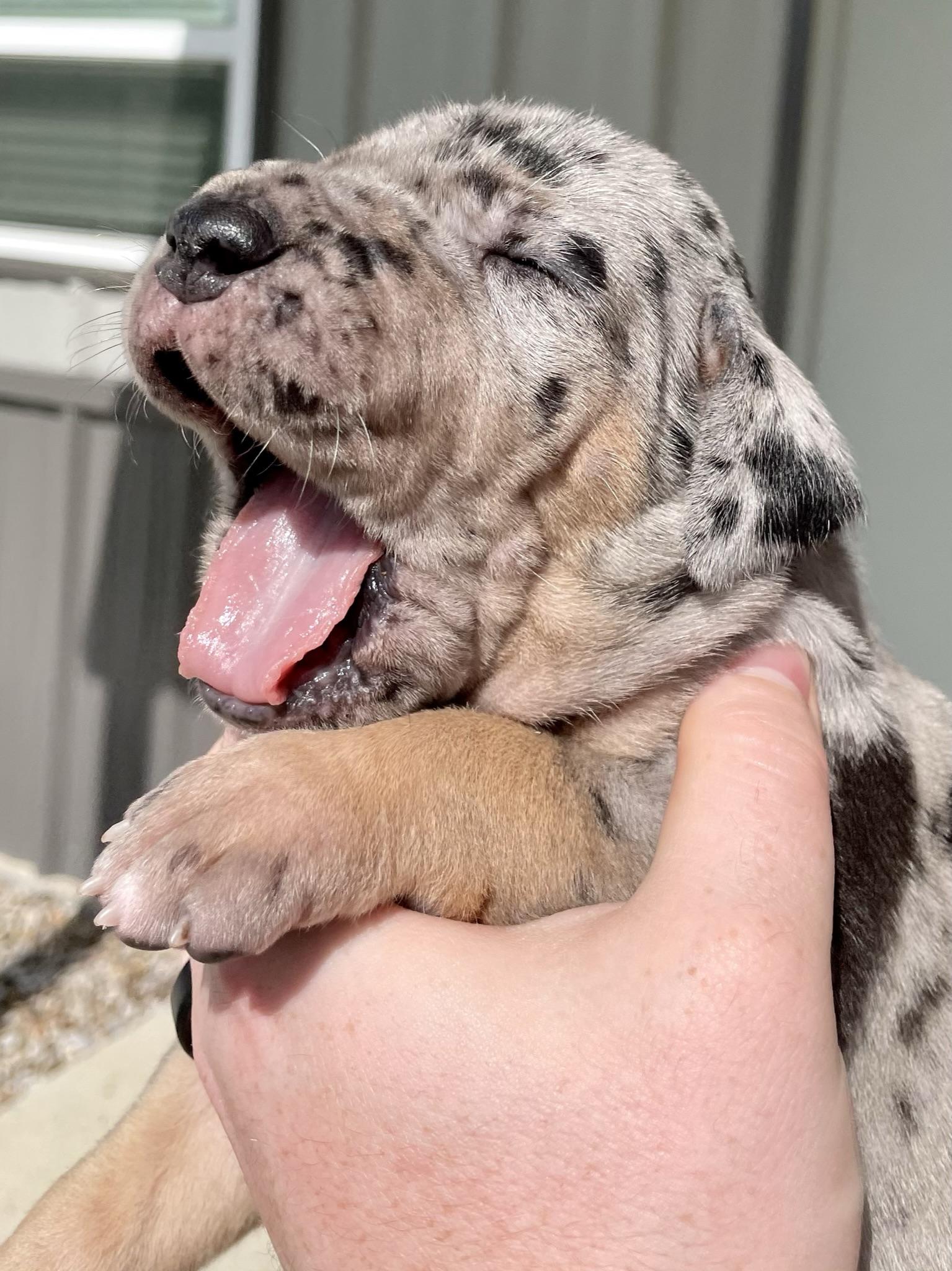 We recently brought home our Great Dane puppy and we couldn’t be happier with the experience. From the very beginning, Shelly was very responsive, knowledgeable, and genuinely cared about the health and well-being of their dogs. Our puppy came home happy and healthy. It’s clear that the dogs are raised with love and attention. We are so thankful to have found such a responsible breeder and would highly recommend them to anyone looking for a Great Dane.