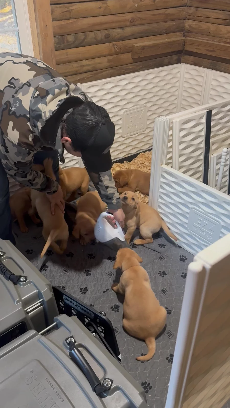We’re are on dry kibble now . Pups are looking real good. We’re still working on kennel conditioning. This next week we will begin some outdoor socialization as long as the weather permits.