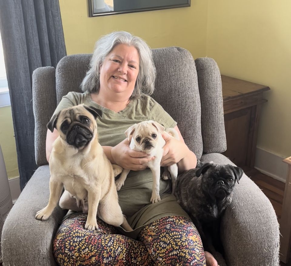 Ryli is a female Pug. Carefully selected as a great representative of her breed, Kendra decided to make her part of their program. Kendra has passed Good Dog’s screening process, which involved a review of their breeding practices, environment, and the mental and physical health of their dogs.