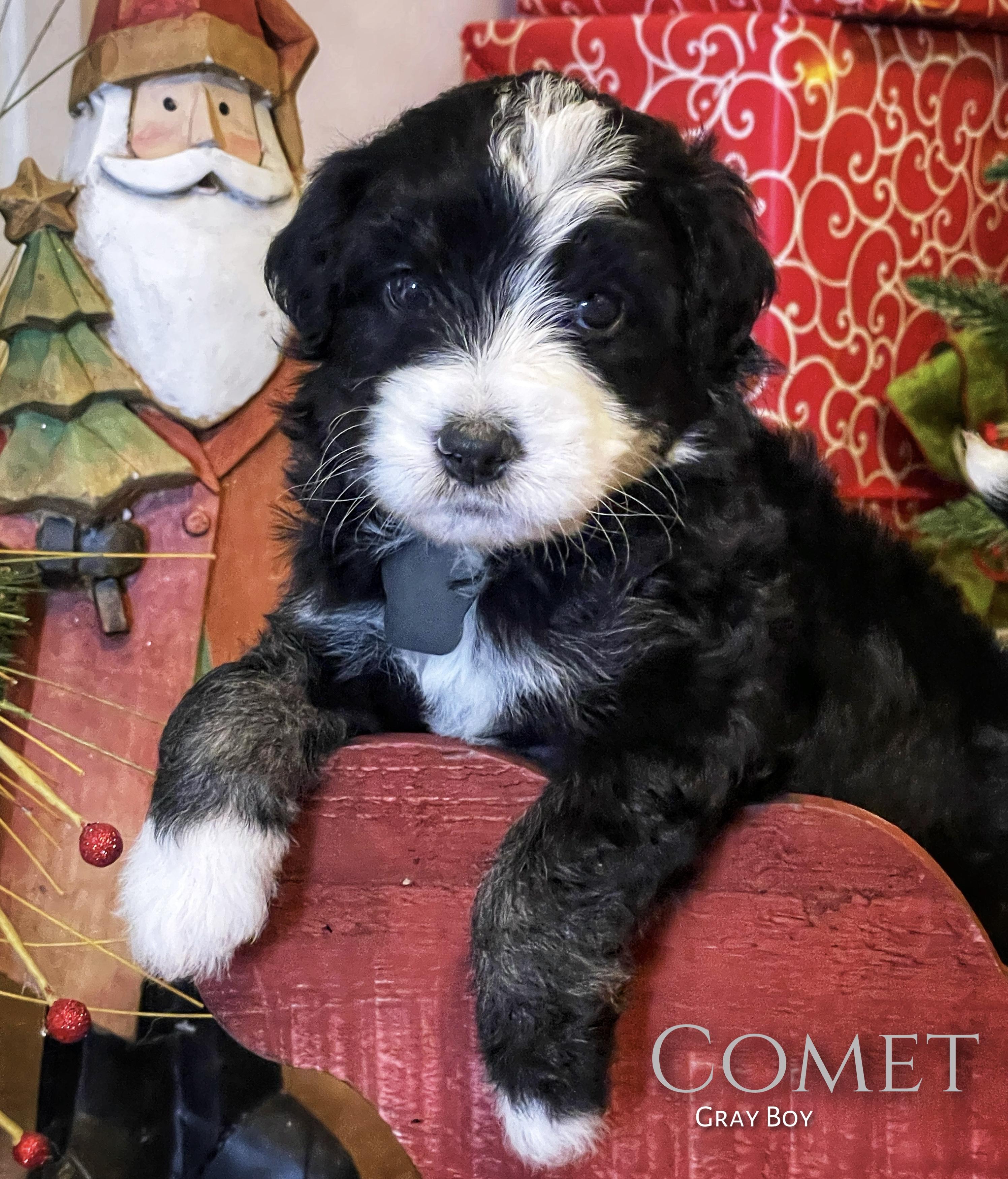 Our Bernedoodle puppies include mini and medium sizes. Goldendoodle puppies include petite, miniature, and medium sizes. Sizes will vary depending on the parent dogs.