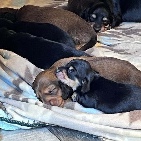I'm Kaitlynn O., the breeder behind Oakleys Dachshund Haven located in Dobson, NC. Our babies are raised inside our home with our 2 children and are given lots of love and attention. We believe in giving them love from the very beginning. When you get a puppy from us you are getting a family member, a new snuggle buddy! We take pride in our puppies and the health and care they receive.