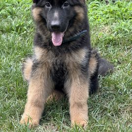 About Good Dog App I wasn’t aware of the Good Dog app until I started browsing for dog breeders near me — and I’m so glad I found it. Good Dog is not just a great platform to browse available puppies and dogs, but a truly genuine tool that connects you with verified, responsible breeders. You can talk to them directly, receive regular updates, and even complete all your payments securely online. It made the whole process smooth and reassuring. About Sherryl I feel incredibly lucky to have connected with Sherryl through Good Dog. She is a wonderful person and a passionate breeder of beautiful Long Coat German Shepherds (show lines). From our first conversation, she was warm, transparent, and attentive to what I was looking for in a puppy. It was clear how deeply she cares about placing her pups in loving homes. She kept me updated consistently, and since I’m out of state, she even scheduled FaceTime calls so I could see the puppy and his dad/mom. Sherryl went above and beyond — giving thoughtful advice about flying with a puppy, arranging a vet-issued health certificate for travel, and sending him with a cabin carrier, food, toys, and blankets. Her love for her dogs is undeniable, and I’m truly grateful for her support throughout the process. About Our Puppy – Maverick 1. We named him Maverick. 2. He’s a calm and confident little guy. 3. He enjoys meeting new people and other dogs. 4. Loves car rides! 5. Doing great in his crate. 6. Potty training is going well — only a few minor accidents. 7. His wellness check went perfectly and he’s healthy across the board. 8. He’s a happy, healthy pup. 9. We feel so blessed to have him in our family.