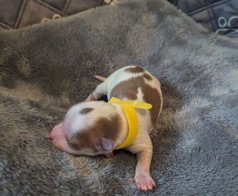 It was really a joy to work with Dixie. She was extremely helpful and very communicative. She sent pictures and videos to keep us updated on how Seth (now Emmet) was doing. He has been such a joy to have and we couldn’t possibly love him more. At our first vet visit our vet said he was a perfect example of a properly bread chihuahua. We are extremely lucky to have found Dixie.