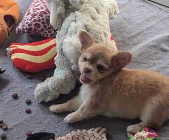 Peaches is a people dog, loves to play and is one of the sweetest Chihuahuas I've ever owned. She knows no strangers. Both parents embarked health tested.