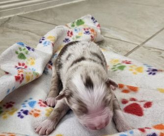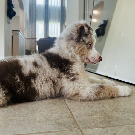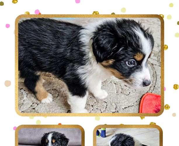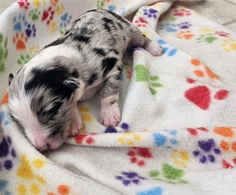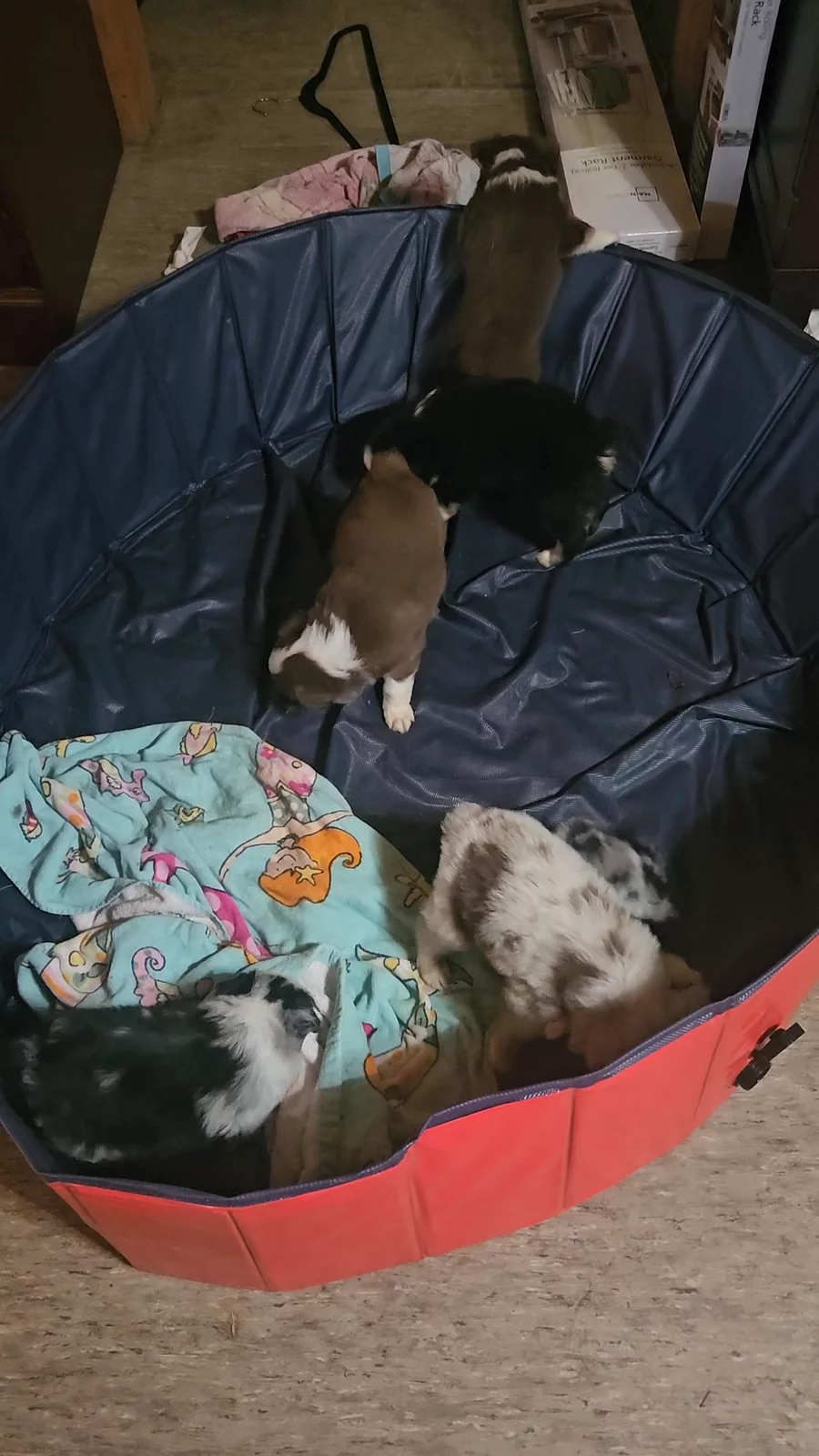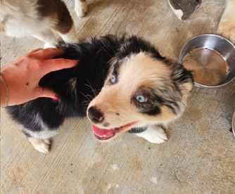 Our puppies include black & white, black, red merle, blue merle, black tri-color, and red tri-color. Colors will vary depending on the parent dogs.