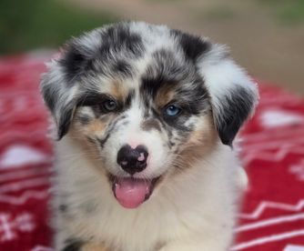 Our puppies include red merle, blue merle, black tri-color, and red tri-color. Colors will vary depending on the parent dogs.