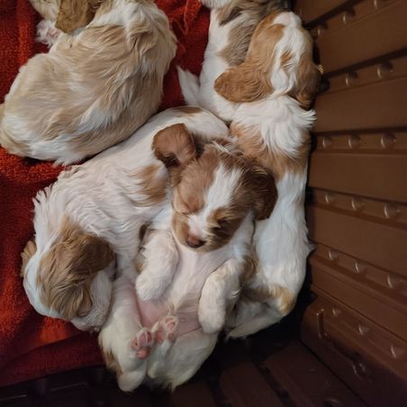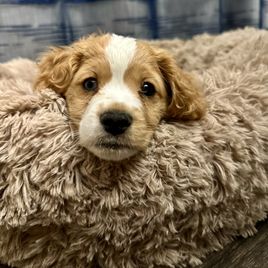 My husband and I knew we wanted a new puppy and thought that a Cavapoo would be perfect. I contacted Rebecca to meet the puppies to learn more about the breed. Rebecca was out of town, but her husband and children met with us. The told us all about the breed and let us play with the puppies. Seeing the kids with the puppies warmed my heart. We knew right away that this was the family we wanted to get our puppy from. Rebecca was amazing with all our communications and helped make the transition to our home very seamless. When we brought Mace (now Cooper) home, he was completely socialized and loving. He was not afraid of anything and was comfortable with our grandchildren right away. When our friends comment about what a great puppy Cooper is, we tell them it was from the wonderful care that Rebecca and her family gave him. We highly recommend Rebecca and the Cavapoo Breed.