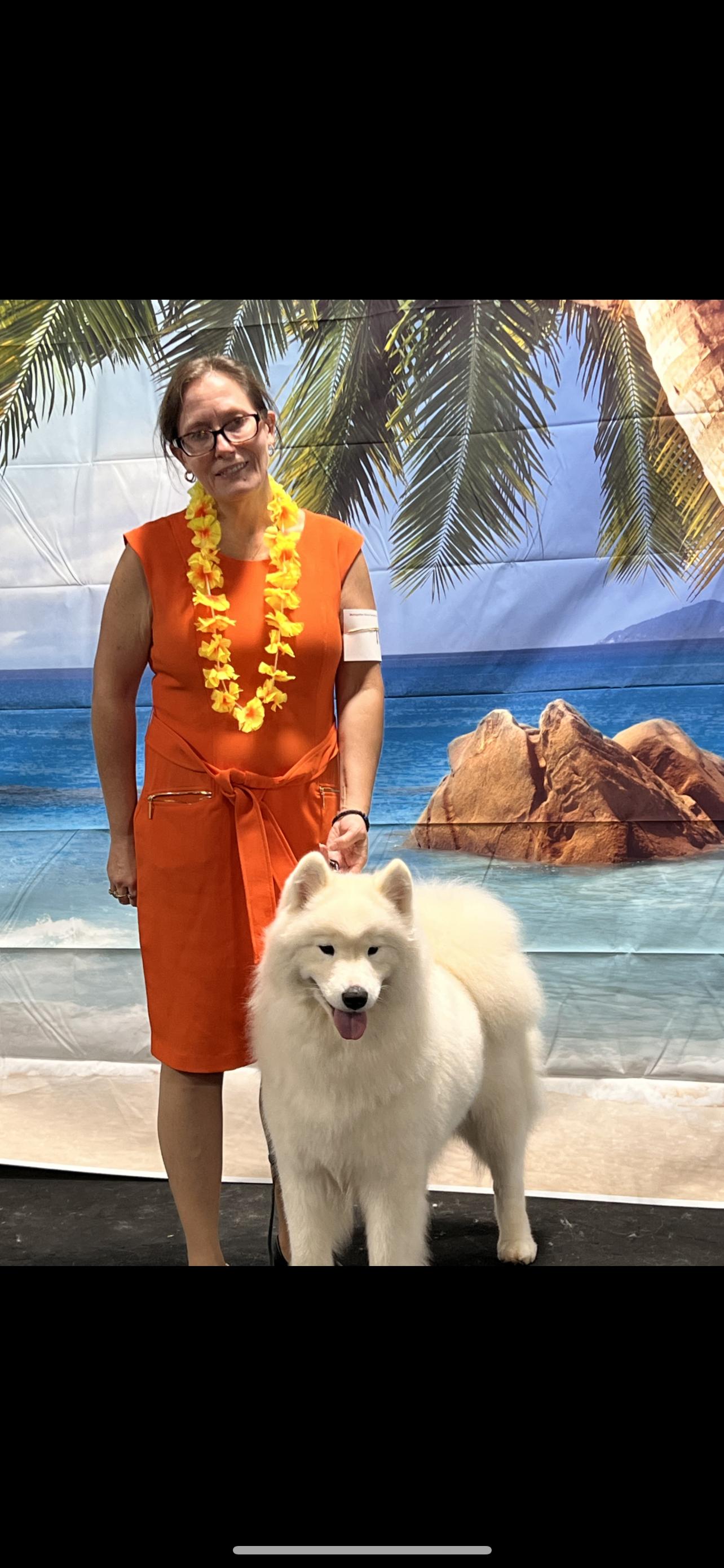We have been breeding for almost 30 years with many champions including breeding the number 1 Samoyed in 2023 and 2024 with multiple BIS (Best In Shows) Reserve BIS, BISS, and group winning and group placing Samoyeds!