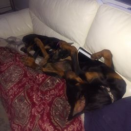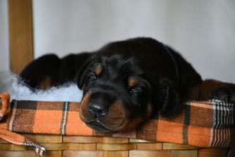 Our puppies include black and rust and red and rust. Colors will vary depending on the parent dogs.