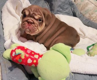 Stufffles is a female Bulldog. Carefully selected as a great representative of her breed, Charity decided to make her part of their program. Charity has passed Good Dog’s screening process, which involved a review of their breeding practices, environment, and the mental and physical health of their dogs.