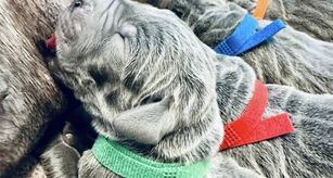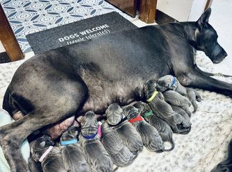 Our puppies include blue and black. Colors will vary depending on the parent dogs.