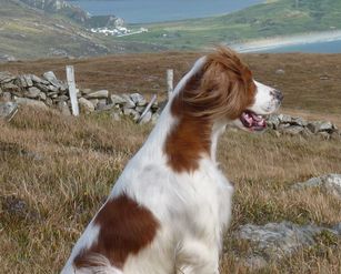 My husband Bob was breeding Irish Setters when we met. We looked for a hunting setter breed that still maintained high hunting instincts. In 1977 we flew to Ireland to meet Mrs Cuddy and her " Gorge." The hook was set.