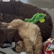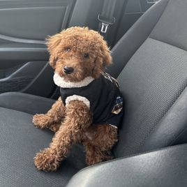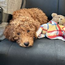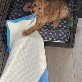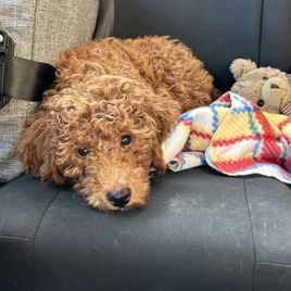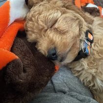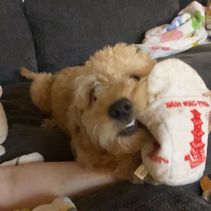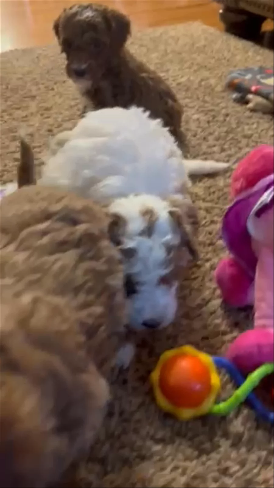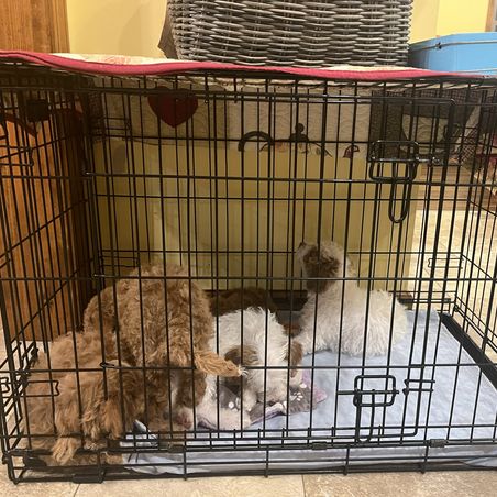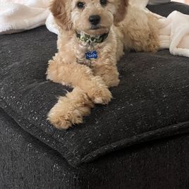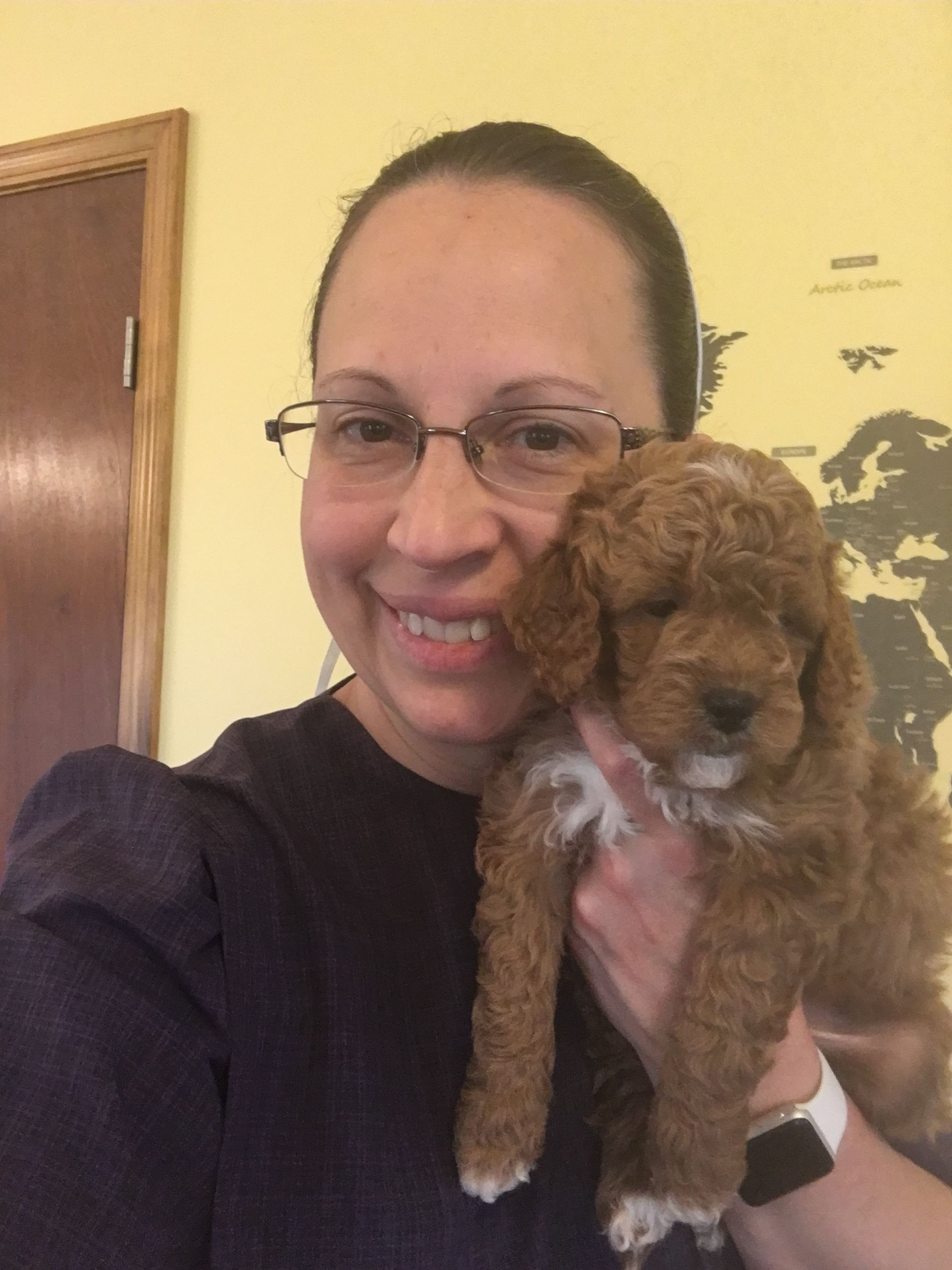 I don’t even have words good enough to tell you how fantastic Sylvia made this entire experience. After long and disappointing research for a reputable breeder I was blessed to find Sylvia and I will admit I thought she was too good to be true! She answered every one of my 13,447 questions and continues to reach out. Atticus and his siblings were raised like Sylvia’s own babies and it is obvious bc that love shines through in Atticus. He’s well socialized and wants to greet anyone within a 20’ radius. Sylvia posted updates on a regular basis and responded to me usually within 15 minutes. She even sent Atticus home w a cute little basket of goodies of which he likes the basket itself most! Potty training is fairly easy bc he was already litter box trained so the move outside wasn’t difficult. Of course as the pic shows sometimes we don’t agree on where things should go! We are already talking about Sylvia’s future litters for Atticus’ buddy. We’ve tried to take a good family pic but we can never seem to get him to stay still for more than 5 seconds. However, I will say that it takes a lot for him to get all that energy out so the naps are wonderful- for both of us! Sylvia and the Good Dog platform are both transparent and helpful and we will definitely do it all over again in the future. Thank you Sylvia 🥰