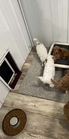 Our puppies include apricot and red. Colors will vary depending on the parent dogs.